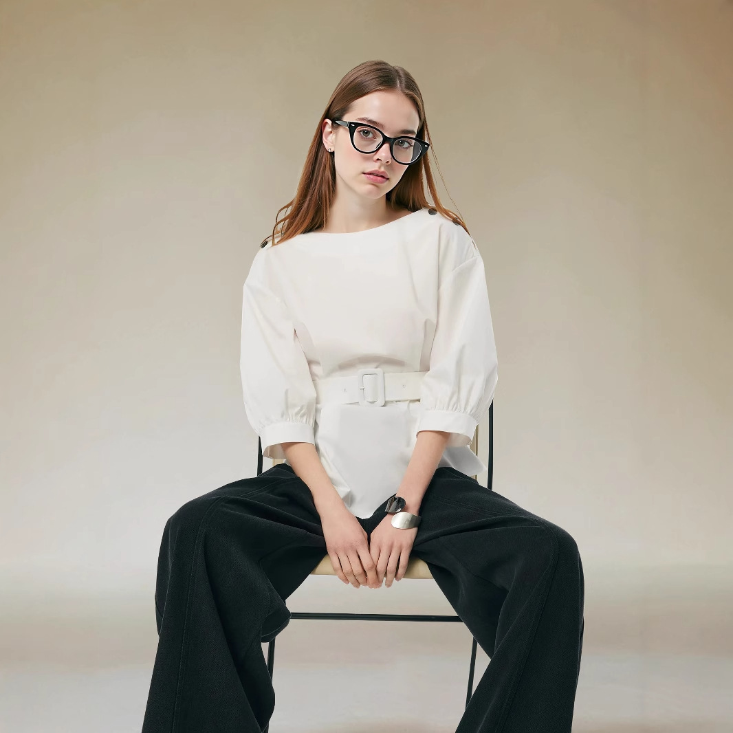 Features: A versatile summer top for women—intellectual, elegant, and refined—featuring a crew neck, a fitted waist, three-quarter-length sleeves, and a designer-inspired look.